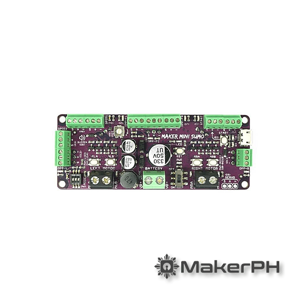 Want to take part in a robotics/Sumo robot competition but don’t want to get your hands dirty dealing with electronics? The Maker Mini Sumo Controller is the ultimate board for you – whether you’re a beginner or a professional robot builder.