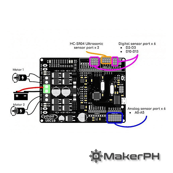 - Dual 10A Motor Driver: With a built-in dual 10A motor driver, the URC10 can drive motors suitable for up to 3kg sumo robots. Ideal for the 3kg Sumo Robot category.